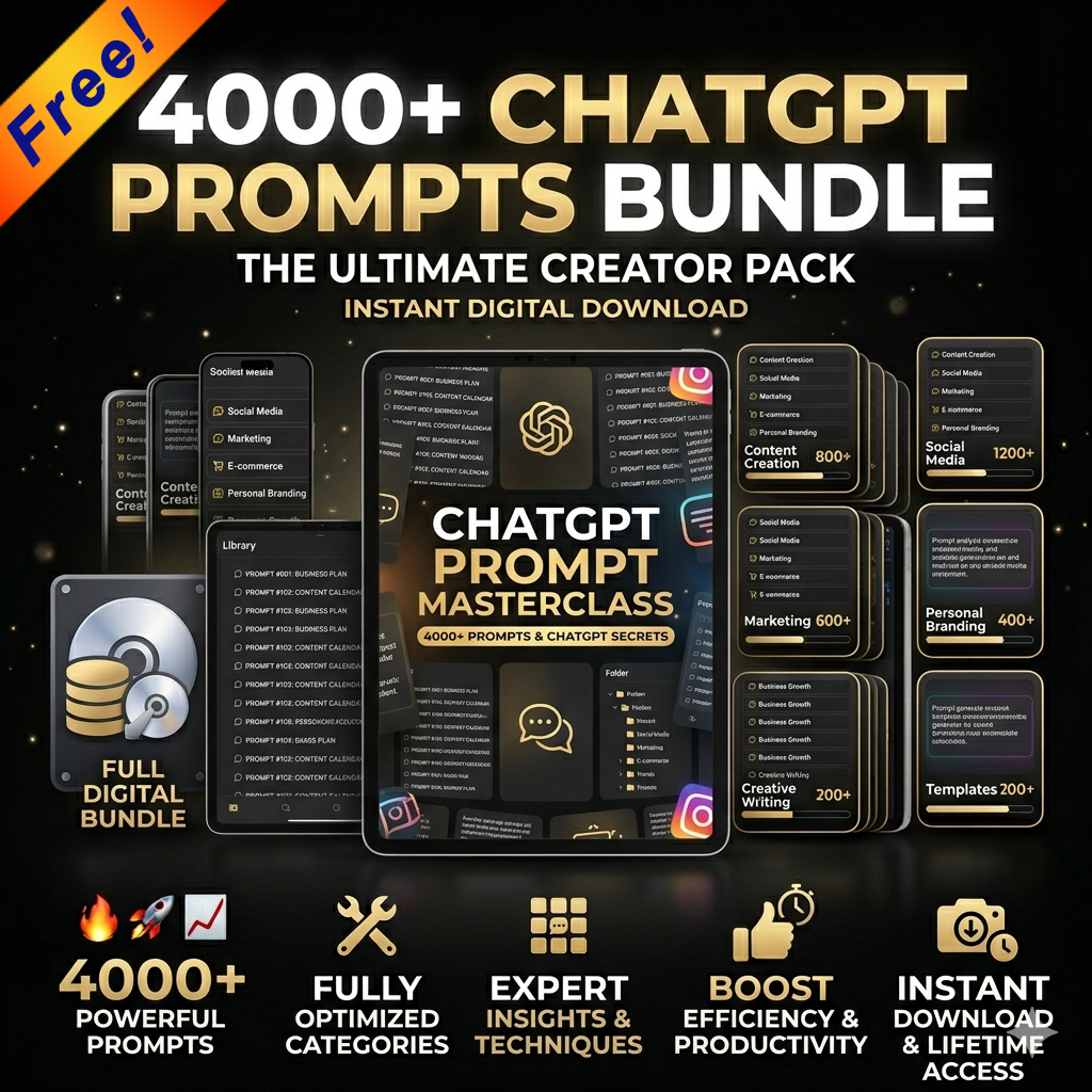 Get a separate bonus collection of 4000+ powerful ChatGPT prompts for content creation, business ideas, marketing, social media, ads, emails, product descriptions, and much more. Simply copy, paste, and use these prompts to get faster and better results. This bonus pack is an additional resource and is separate from the ebook content.